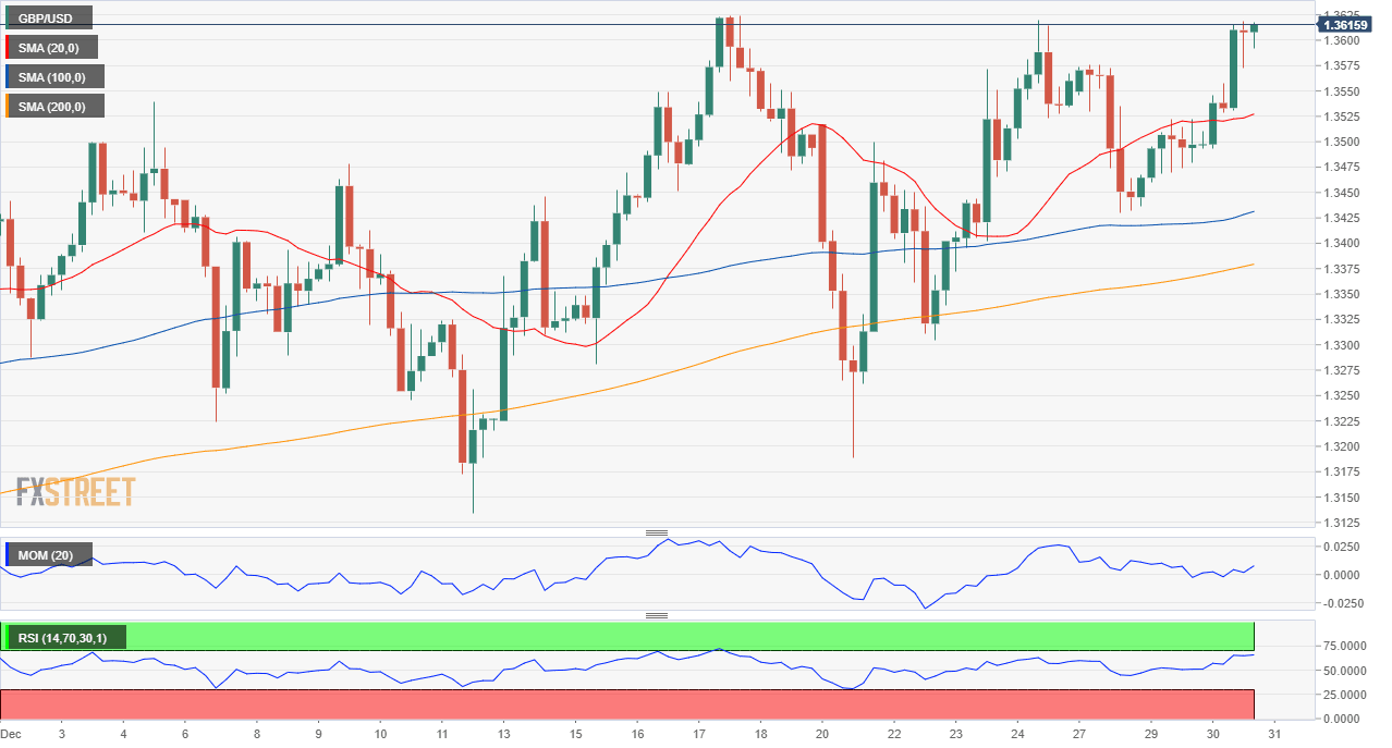 - El GBP/USD mantiene ganancias cerca del máximo de 2020 en 1.3624.