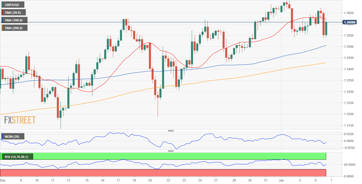 - El GBP/USD cotiza alrededor de 1.3600, luciendo neutral en el corto plazo.