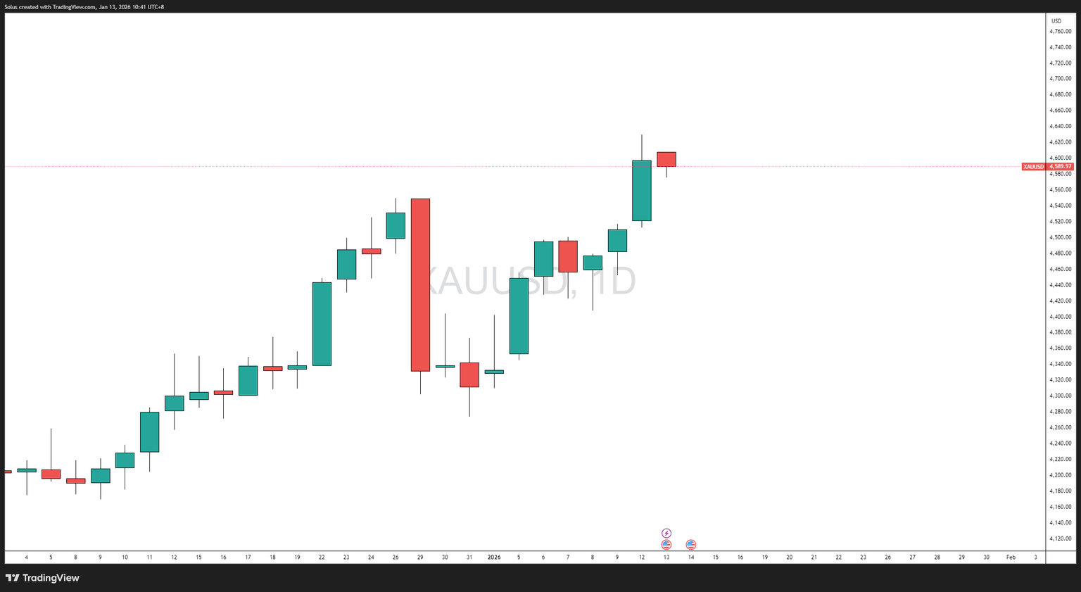 En el marco de tiempo diario, el oro continúa imprimiendo máximos más altos y mínimos más altos, manteniendo la estructura del mercado alcista a pesar de la volatilidad intermitente.