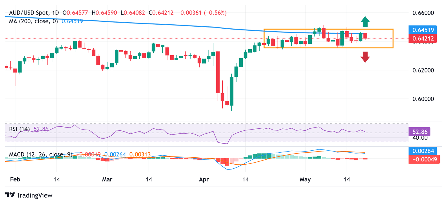 El par AUD/USD permanece confinado en un rango de negociación de varias semanas y hasta ahora ha estado luchando por romper a través de la SMA de 200 días, que es técnicamente significativa. Además, los fracasos repetidos para encontrar aceptación por encima de la marca psicológica de 0.6500 justifican cierta cautela para los operadores alcistas. Sin embargo, los indicadores técnicos positivos en el gráfico diario hacen prudente esperar una ruptura convincente a través del soporte del rango de negociación, alrededor de la región de 0.6360-0.6355, antes de posicionarse para pérdidas más profundas.