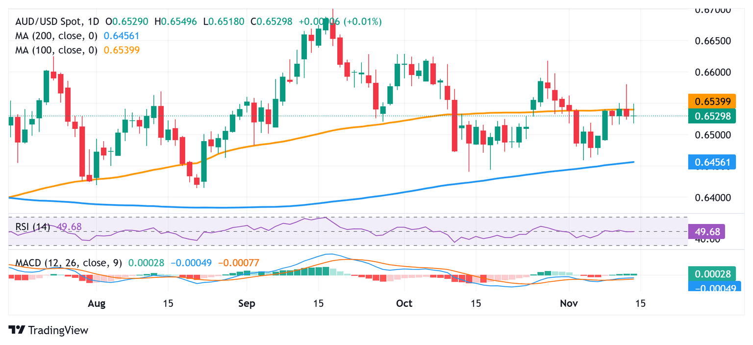 El par AUD/USD atrae a algunos vendedores tras un repunte intradía hacia la mitad de los 0.6500 el viernes, aunque carece de continuidad y permanece cerca de un máximo de dos semanas, alcanzado el día anterior. Un tono generalmente más débil en los mercados de acciones, junto con las preocupaciones sobre la economía de China, resulta ser un factor clave que socava al Dólar australiano (AUD). Además, la aparición de algunas compras en torno al Dólar estadounidense (USD) se observa ejerciendo presión a la baja sobre el par de divisas, aunque el potencial a la baja parece limitado.