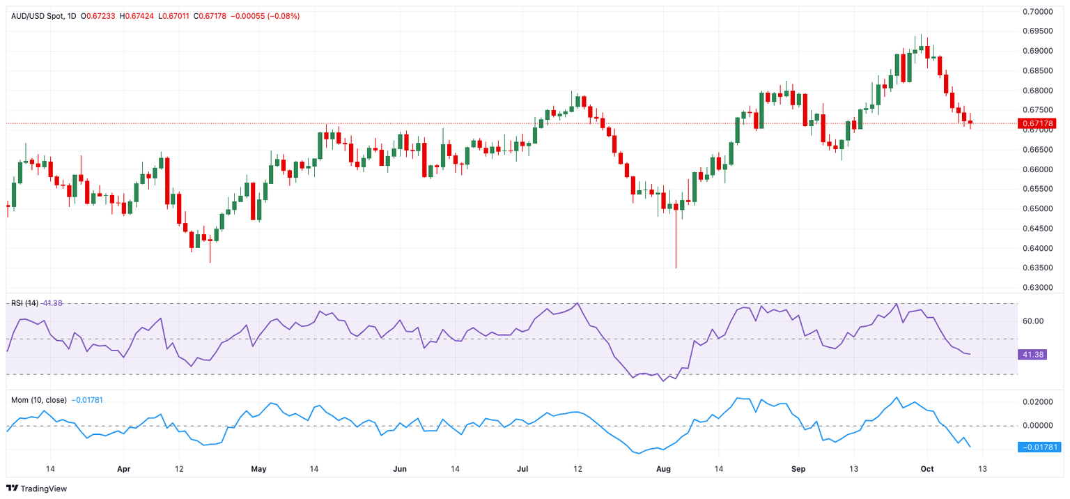 Las pérdidas adicionales pueden llevar al AUD/USD a probar nuevamente su mínimo de octubre de 0.6699 (10 de octubre), antes del mínimo de septiembre de 0.6622 (11 de septiembre), que aún está respaldado por la crítica SMA de 200 días (0.6626).