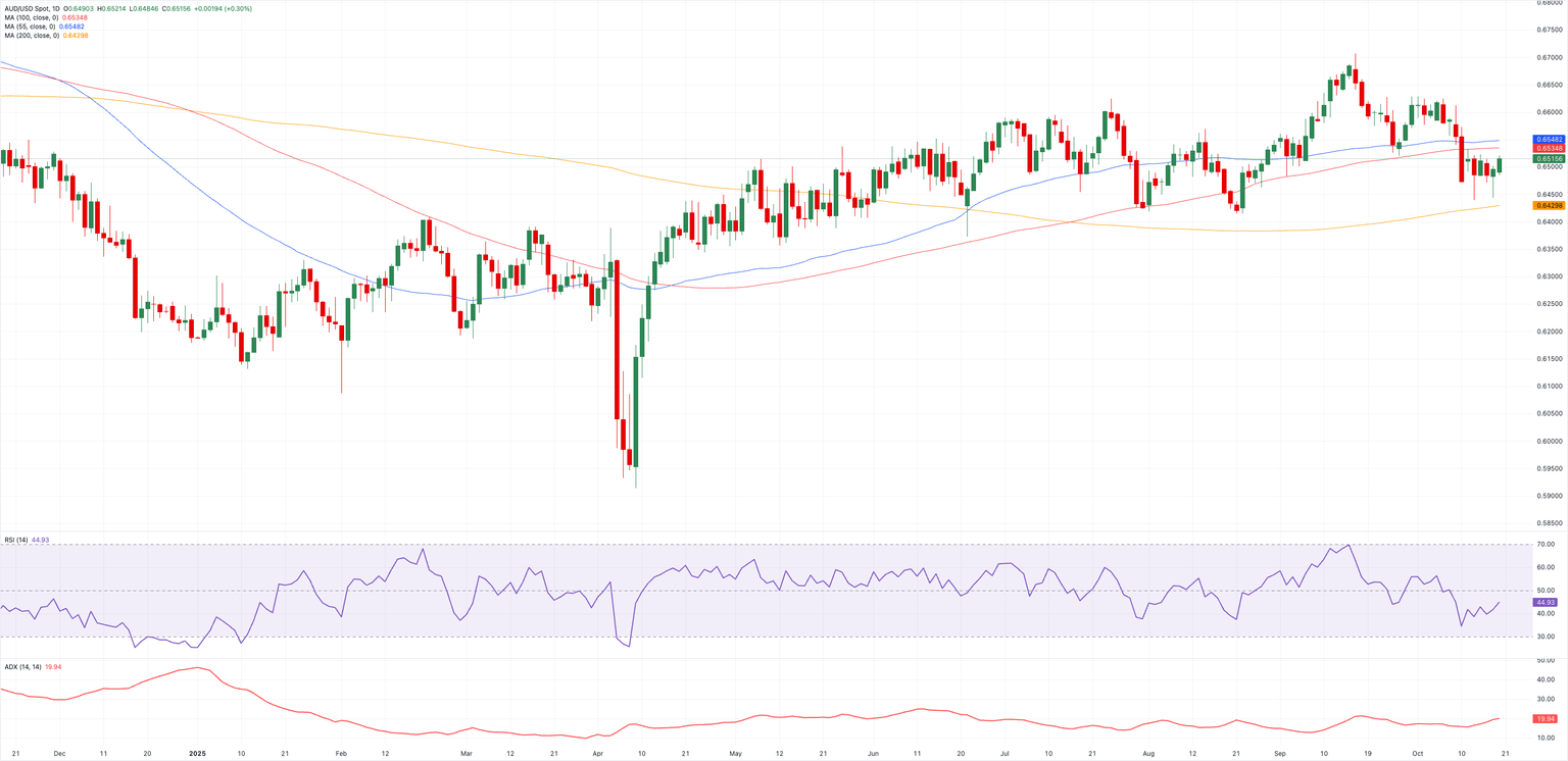 El resurgimiento del impulso vendedor podría llevar al AUD/USD a revisar el suelo de octubre en 0.6440 (14 de octubre), antes de la crítica SMA de 200 días en 0.6428, y la base de agosto en 0.6414 (21 de agosto). Más al sur aparece el valle de junio en 0.6372 (23 de junio), mientras que un descenso más profundo podría desafiar el nivel redondo clave de 0.6000 antes del mínimo de 2025 en 0.5913 (9 de abril).