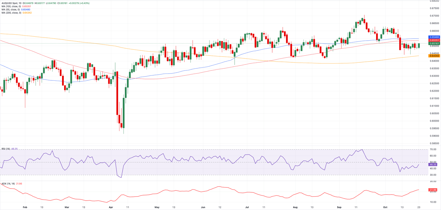 - El AUD/USD dejó de lado dos caídas diarias consecutivas, superando nuevamente el nivel de 0.6500.