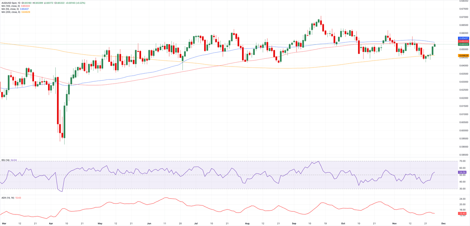 El Dólar australiano (AUD) gana más impulso el jueves, motivando al AUD/USD a avanzar por quinto día consecutivo y alcanzar brevemente nuevos máximos de dos semanas cerca de 0.6540, una región coincidente con sus SMA provisionales de 55 días y 100 días.