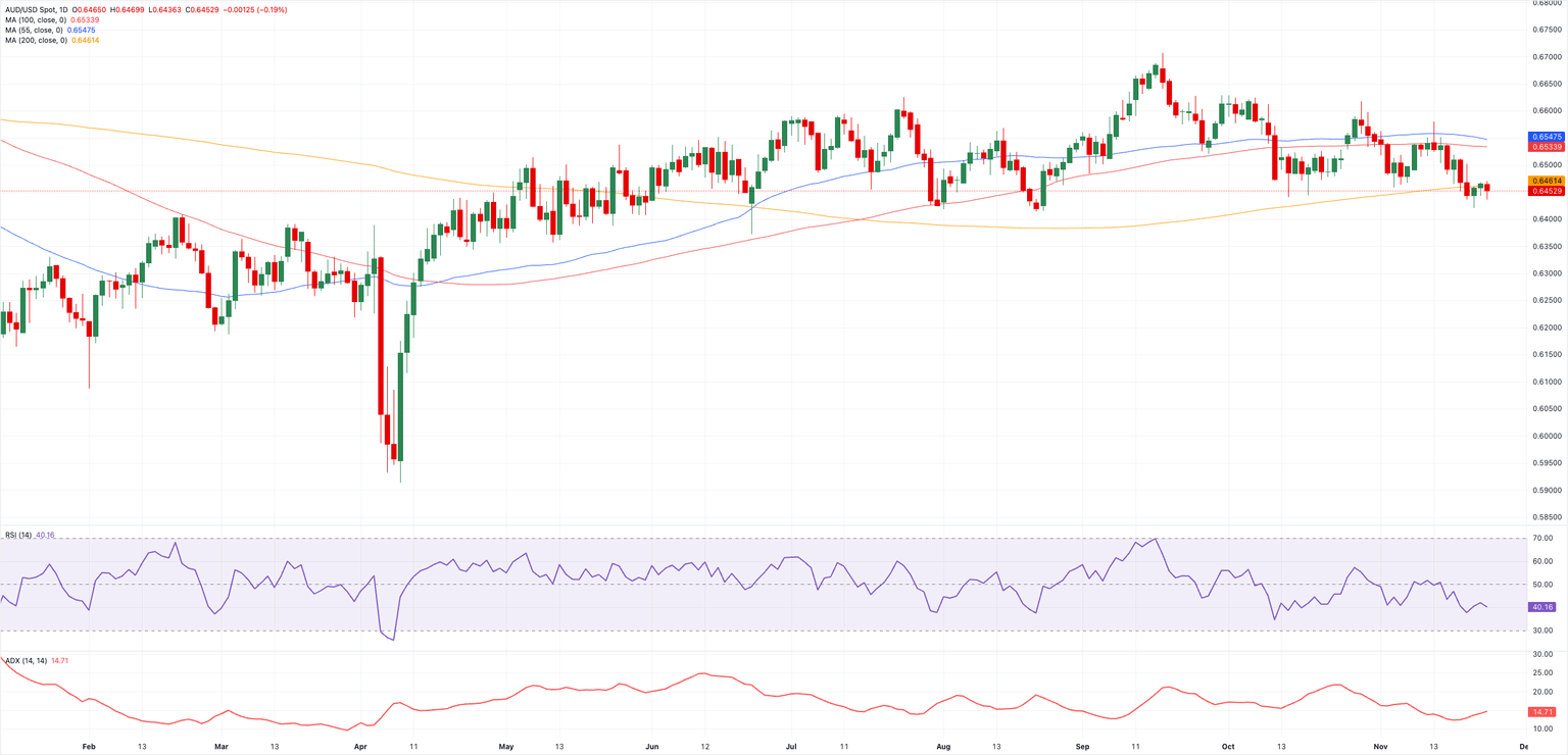 El Dólar australiano (AUD) está nuevamente en retroceso, cediendo parte del optimismo de principios de semana. Ese retroceso ha empujado al AUD/USD de nuevo por debajo de su clave SMA de 200 días cerca de 0.6460, borrando dos días consecutivos de ganancias.