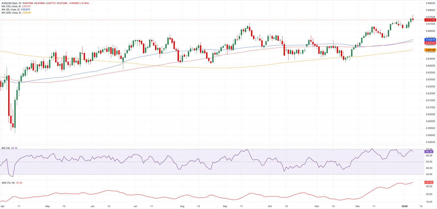 El Dólar australiano (AUD) se vio bajo presión renovada el miércoles, con el AUD/USD desinflándose desde nuevos máximos de 15 meses alrededor de 0.6760 para revisitar la región de 0.6720. El par, además, dejó de lado tres avances diarios consecutivos, aunque aún mantiene un sólido inicio de año.