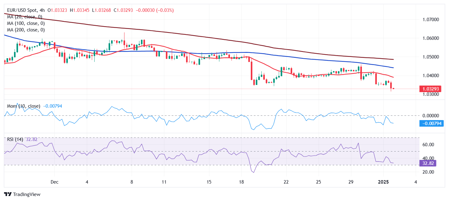 EUR/USD Pronóstico del Precio: Los vendedores mantienen la presión, apuntan a niveles por debajo de 1.0300