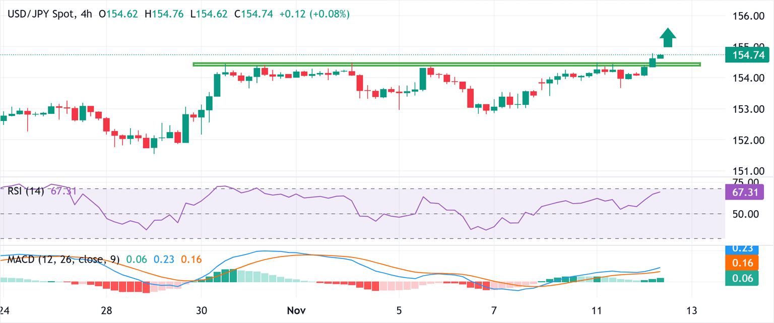 Además, Takaichi dijo que el gobierno planea compilar un paquete de medidas para amortiguar el impacto del aumento de los costos de vida y aumentar la inversión en áreas de crecimiento. Esto ocurre en medio de la renuencia del BoJ a comprometerse con más aumentos de tasas de interés, lo que añade incertidumbre sobre la trayectoria de endurecimiento de la política del banco central. Aparte de esto, el optimismo sobre un posible acuerdo para poner fin al cierre del gobierno de EE.UU., junto con la disputa diplomática de Japón con China sobre los comentarios de Takaichi sobre Taiwán, ejerce aún más presión sobre el JPY y contribuye al movimiento al alza del par USD/JPY.