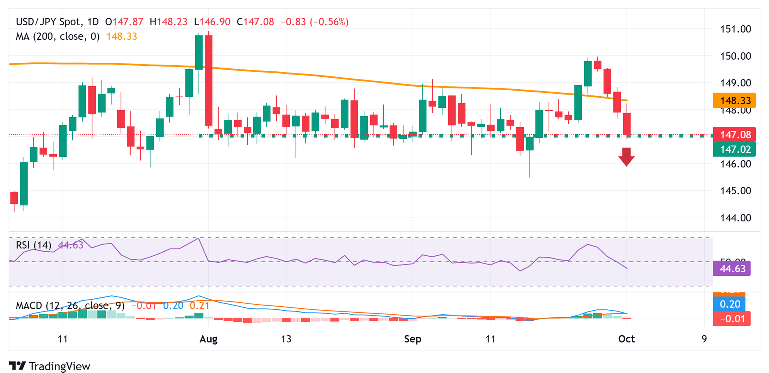 Pronóstico del USD/JPY: Los bajistas esperan una ruptura por debajo de 147.00