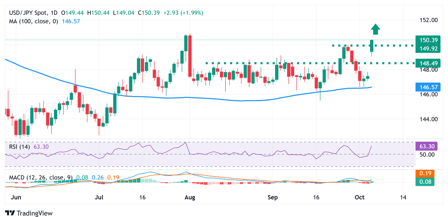 Pronóstico del Precio del USD/JPY: Se dispara por encima de 150.00 ya que la victoria de Takaichi modera las apuestas de subida de tasas del BoJ