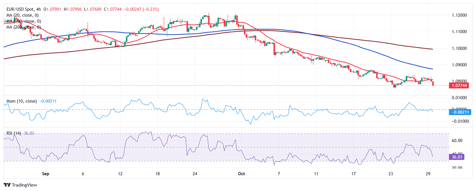 - El EUR/USD acelera su caída después de no poder reconquistar el umbral de 1.0800.