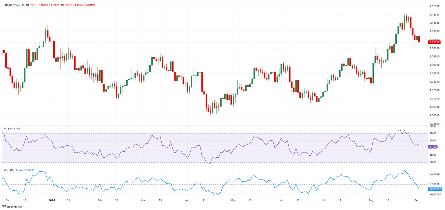 - El EUR/USD retrocedió a nuevos mínimos de dos semanas cerca de 1.1030.