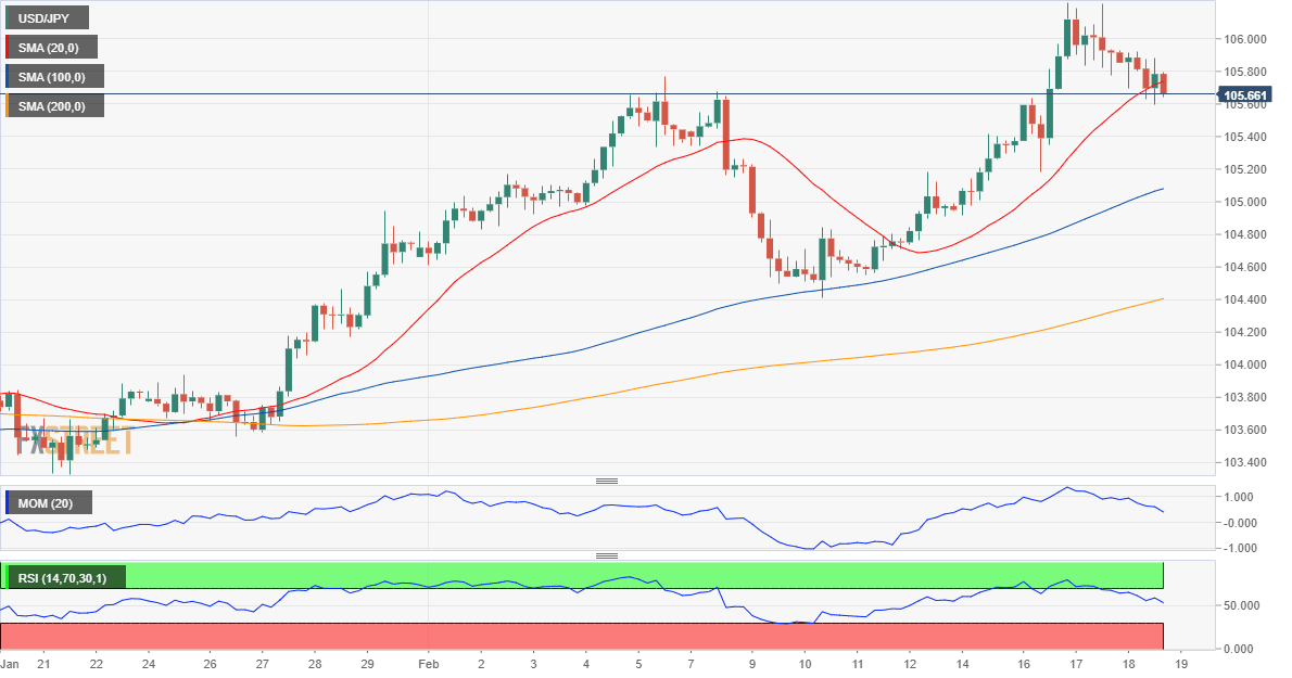 El USD/JPY ha registrado pérdidas modestas por segundo día consecutivo, cotizando en torno a 105.70 antes de la apertura asiática. Las acciones mundiales cayeron, mientras que los rendimientos de los bonos del Tesoro estadounidense retrocedieron, lo que pesó sobre el dólar. Sin embargo, la caída del par fue modesta, considerando la fuerte caída de los índices estadounidenses. Los rendimientos de la deuda pública se mantuvieron cerca de sus máximos recientes de un año, y los de la nota del Tesoro a 10 años se estabilizaron en torno al 1.28%.