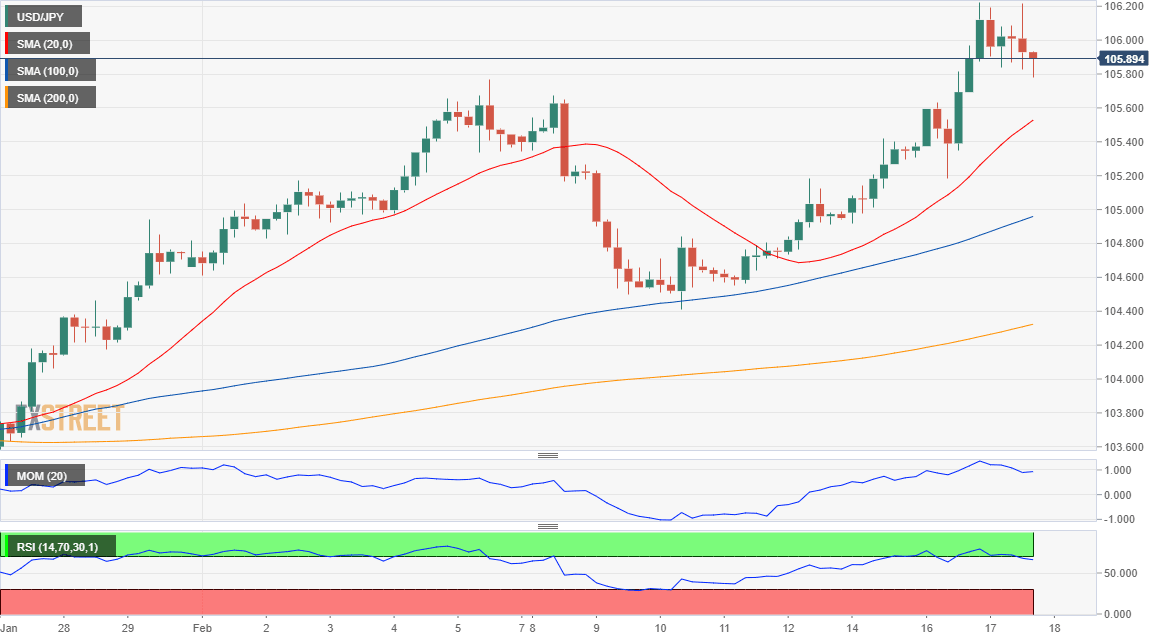 El par USD/JPY mantiene su postura alcista a corto plazo y podría reanudar su avance, aunque seguirá dependiendo del comportamiento de los rendimientos. El gráfico de 4 horas muestra que el par se mantiene por encima de las medias móviles alcistas, con la media simple de 20 proporcionando soporte inmediato alrededor de 105.50. Los indicadores técnicos han corregido las condiciones de sobrecompra y ahora intentan retomar sus avances en niveles positivos. El siguiente nivel de resistencia relevante es 106.54, máximo mensual de septiembre de 2020.