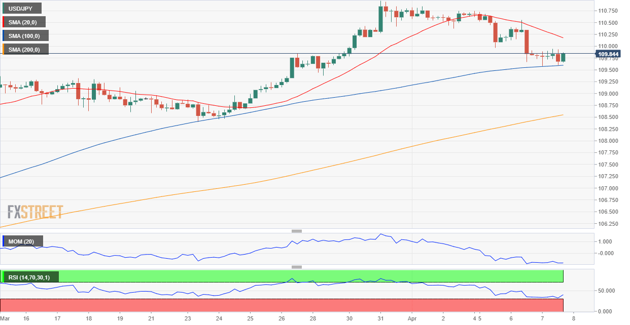 - El USD/JPY cotiza por debajo de 110.00 sin signos de una próxima recuperación.