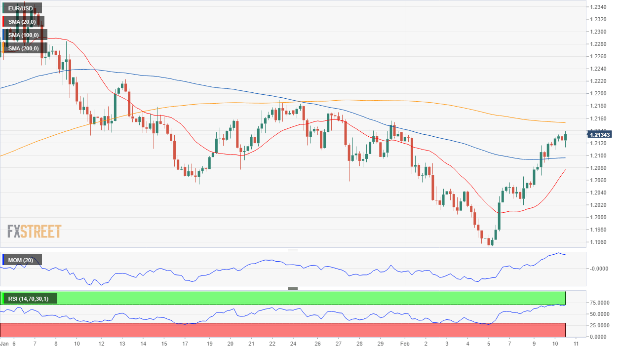 - El EUR/USD se opera cerca de un máximo diario de 1.2143 y podría extender su avance.