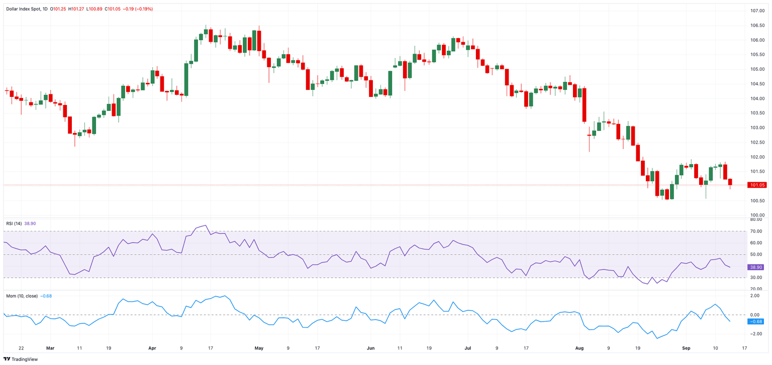 Si el impulso bajista continúa, el DXY podría primero apuntar al mínimo de 2024 de 100.51, registrado el 27 de agosto, y luego al nivel psicológicamente importante de 100.00. Más al sur emerge el mínimo de 2023 de 99.57, visto el 14 de julio.
