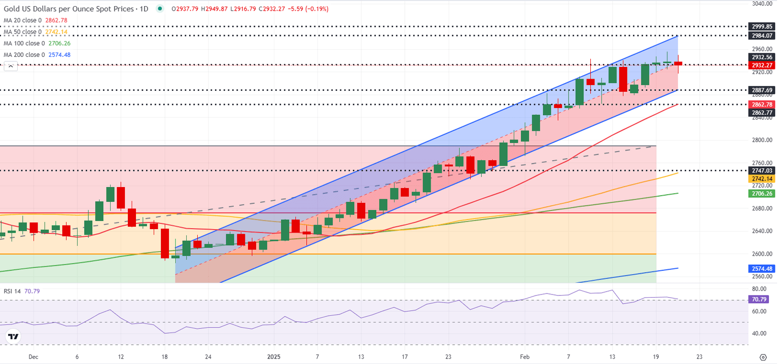 Eventos adicionales en torno al conflicto Rusia-Ucrania también podrían influir en el rendimiento del Oro. En una publicación en redes sociales, Trump llamó al presidente ucraniano Volodymyr Zelenskiy un "dictador sin elecciones" y le instó a actuar rápido o arriesgarse a perder su país. Informando sobre el asunto, "los funcionarios europeos han quedado sorprendidos y descolocados por los movimientos de la administración Trump en Ucrania en los últimos días", dijo Reuters. Una mayor escalada de las tensiones geopolíticas con la UE y EE.UU. chocando sobre la resolución del conflicto podría desencadenar otro aumento en los precios del Oro.