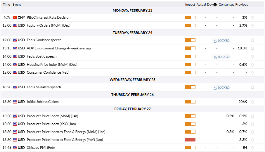 La herramienta FedWatch de CME muestra que los mercados prácticamente no ven posibilidad de un recorte de tasas de la Fed en marzo y valoran en aproximadamente un 80% la probabilidad de mantener la política en abril. En caso de que los funcionarios de la Fed dejen la puerta abierta a un recorte de tasas en abril, el USD podría estar bajo presión y permitir que el XAU/USD gane tracción. Por el contrario, el USD podría seguir superando a sus rivales y pesar sobre el XAU/USD, si los comentarios de la Fed reafirman la posibilidad de considerar una subida de tasas, como se mencionó en las minutas de la reunión de enero.