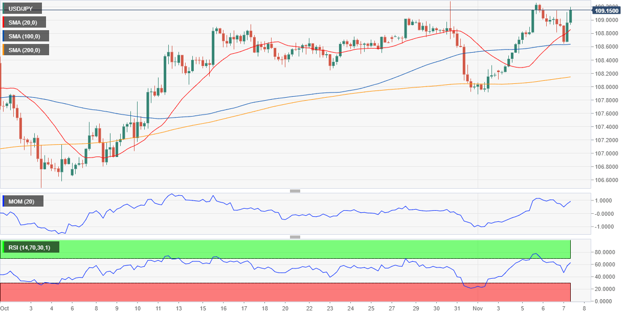 El par USD/JPY cotiza alrededor de 109.15, técnicamente alcista según el gráfico de 4 horas, ya que el par encontró compradores en torno al 23.6% de retroceso de su rally de octubre, donde también tiene su SMA de 100. La SMA de 20 mantiene su pendiente alcista por debajo del nivel actual y por encima de las más grandes, mientras que los indicadores técnicos reanudaron sus avances después de corregir las condiciones de sobrecompra. Grandes stops deben acumularse por encima del nivel de 109.30, y si se activan, el par tiene espacio para extender su recuperación hacia 110.00, principalmente si prevalece el apetito por el riesgo.