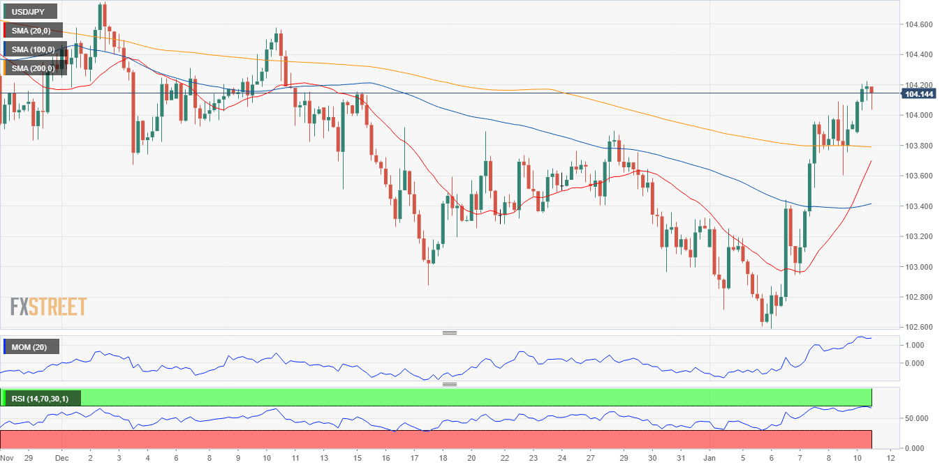 - USD/JPY está alcista en el corto plazo enfrenta una resistencia crítica alrededor de 104.50.