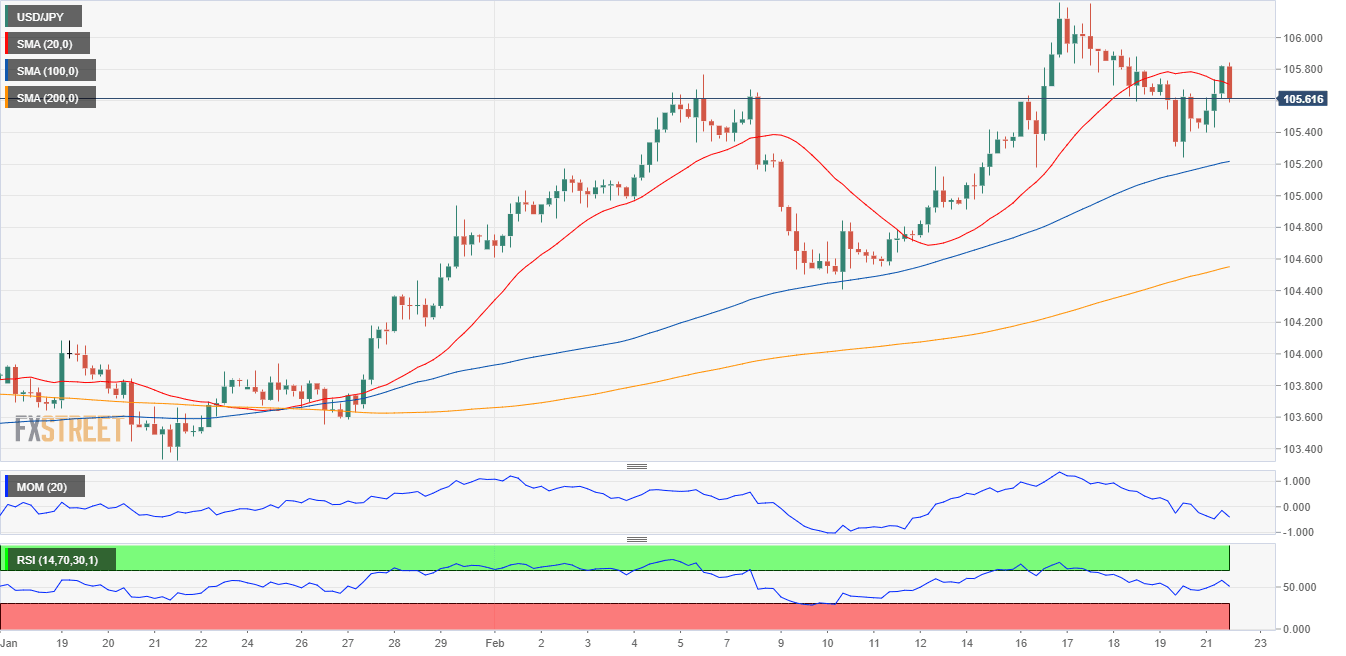 - El USD/JPY corre el riesgo de caer aún más, necesita romper por debajo de 105.30.