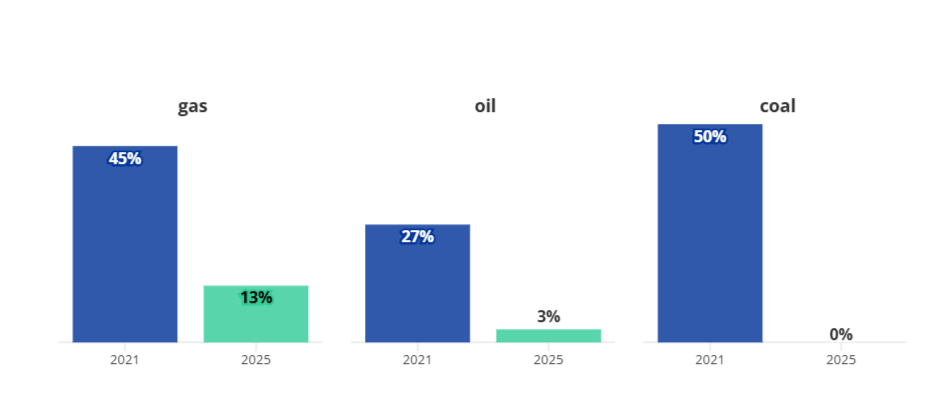 Hasta ahora, la participación del gas, petróleo y carbón rusos en las importaciones energéticas de la UE ha disminuido significativamente entre 2021 y 2025, pero el gas y el petróleo rusos no han sido completamente eliminados aún, según la Comisión Europea.