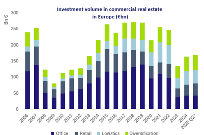 Las inversiones en inmuebles comerciales en Europa registraron un sólido primer trimestre antes de desacelerarse en el segundo, en un contexto de incertidumbre macroeconómica y anuncios de nuevos aranceles.