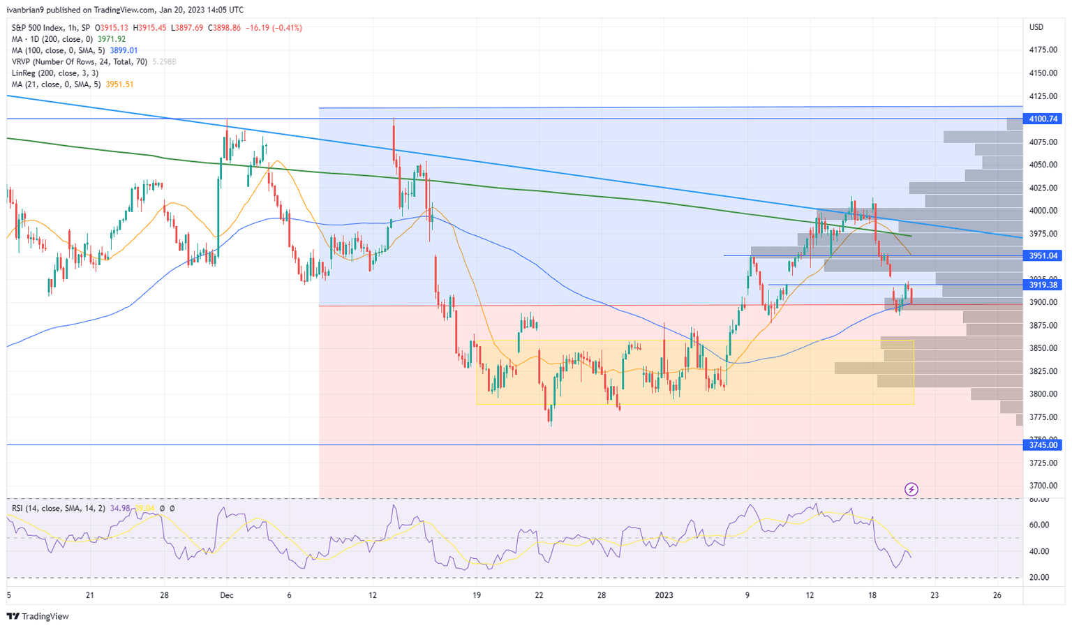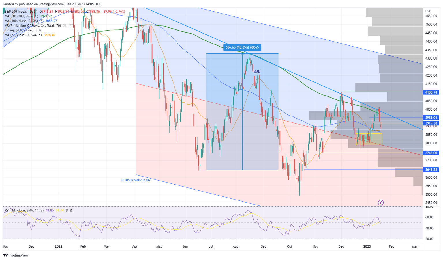 Todavía queda recorrido a la baja hasta que alcancemos la zona de tráfico (recuadro amarillo) por debajo de 3.850. 3.919 es el pivote a corto plazo, el hueco de la semana pasada. Se cubrió el jueves, y lo que queda por debajo mantiene la presión bajista. La fuerte resistencia de la línea de tendencia y la media móvil de 200 días en los 4.000 puntos es inminente. En general, es probable un comercio agitado con sesgo bajista.
