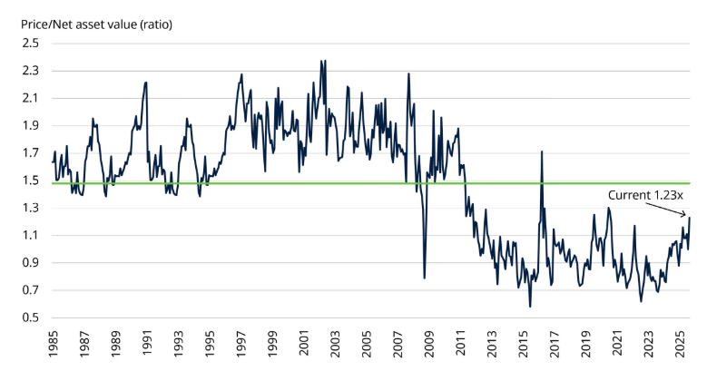 Gráfico 2: Las valoraciones P/NAV están muy por debajo del promedio a largo plazo