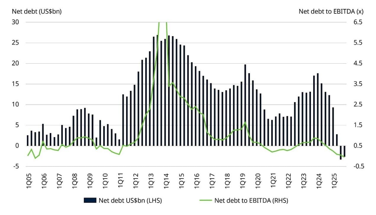 En el último trimestre (2T 2025), los productores generaron aproximadamente un 50% más de flujo de caja libre de lo que estimaba el consenso. Unas previsiones realistas, la disciplina de la gestión y un entorno macroeconómico sólido para los precios de los metales preciosos están teniendo un efecto transformador.