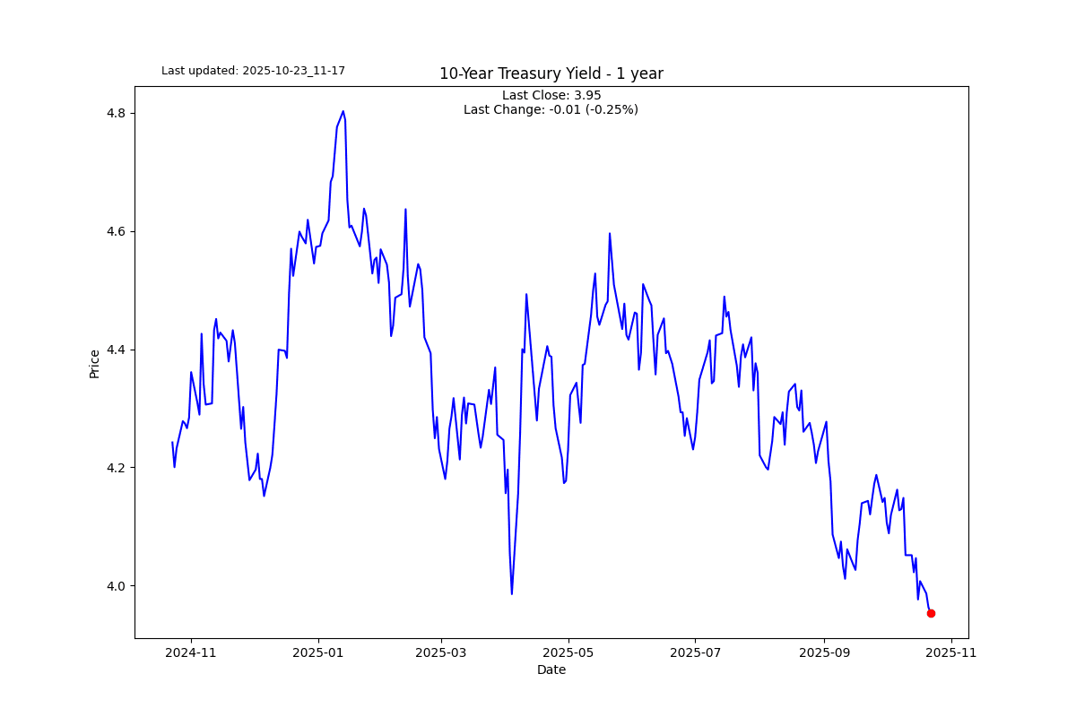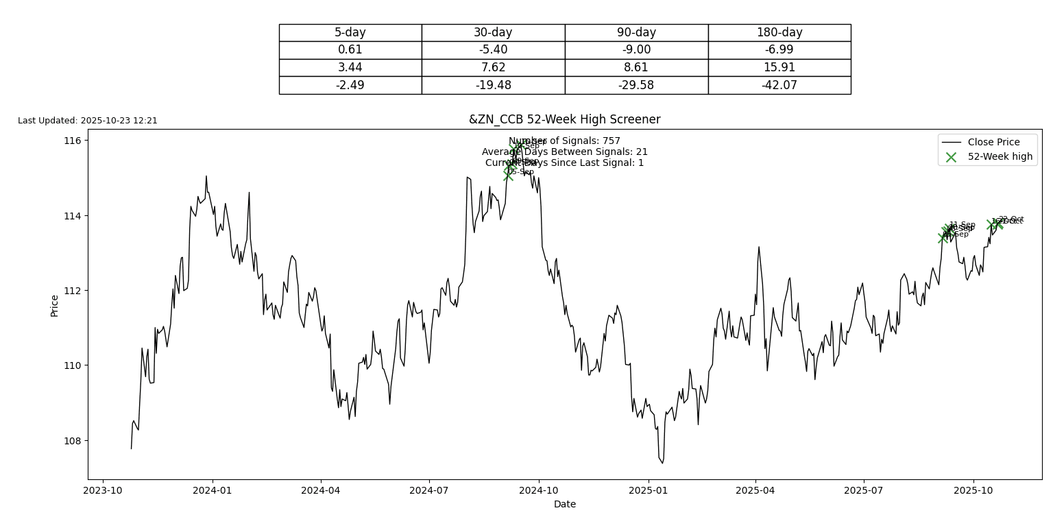 Los futuros del Tesoro a 10 años alcanzaron un nuevo máximo de 52 semanas. Lo que significa que los rendimientos del tesoro alcanzaron un mínimo de 52 semanas.