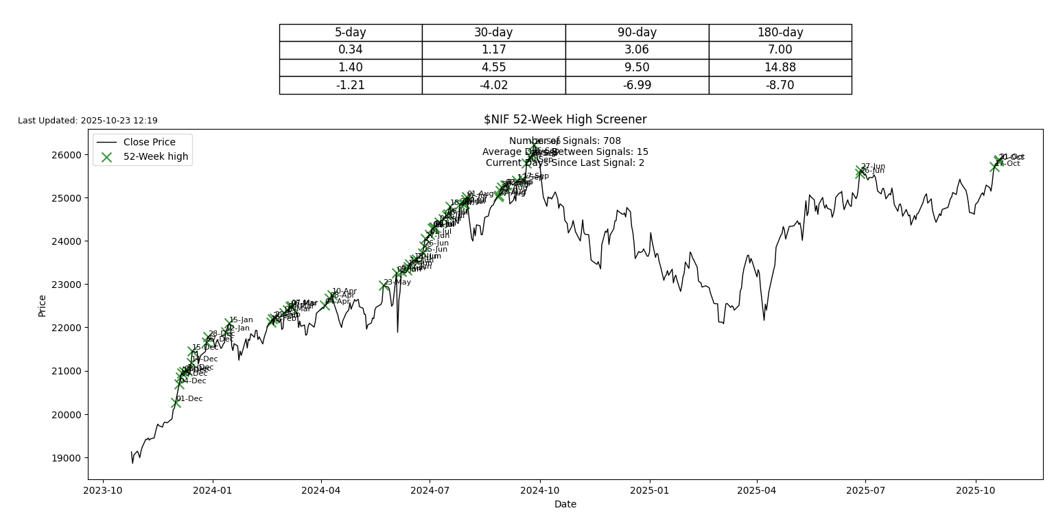 El índice Nifty 50 de India acaba de alcanzar un nuevo máximo de 52 semanas. Es interesante que aún no haya superado su ATH alcanzado el año pasado.