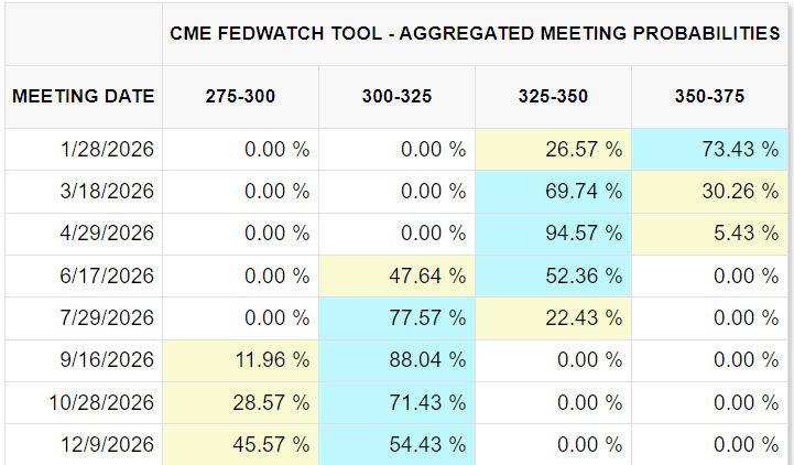 En el recorte actual, los responsables de políticas de la Fed esperan un ritmo moderado de recortes de tasas de interés de cara al futuro. El Comité Federal de Mercado Abierto (FOMC) solicitó un único recorte de un cuarto de punto en 2026, con un recorte más esperado en el horizonte en 2027. Los operadores de tasas fueron rápidos en ignorar las propias proyecciones de tasas de la Fed en el último gráfico de puntos, con los mercados de tasas valorando casi un 90% de probabilidades de que la Fed esté en camino de entregar un segundo recorte de tasas tan pronto como en septiembre de 2026.