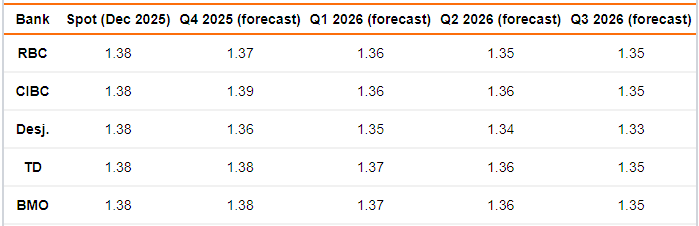 - Las expectativas generales de los analistas se inclinan hacia una mayor bajada del USD/CAD durante 2026, con la vista puesta en 1.3500.