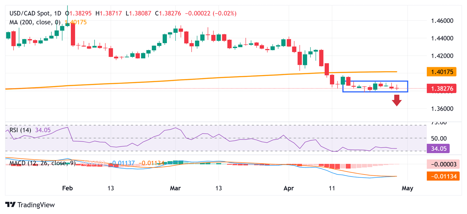 USD/CAD Pronóstico del Precio: Los bajistas esperan el quiebre del rango de negociación tras los resultados de las elecciones canadienses
