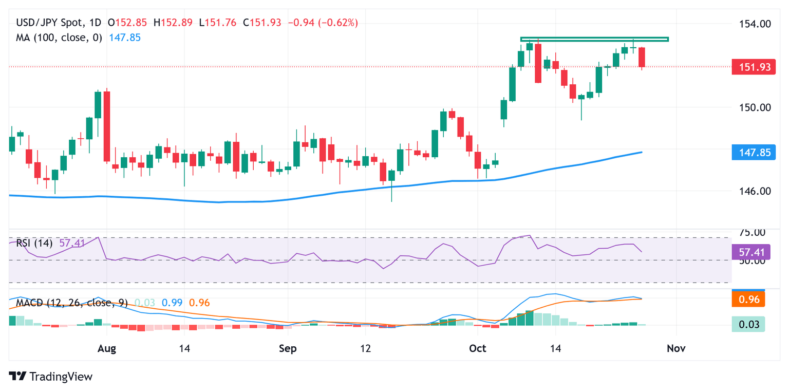 Además, los comerciantes celebraron el resultado de una reunión de alto perfil entre la nueva Primera Ministra de Japón, Sanae Takaichi, y el Presidente de EE.UU., Donald Trump, en Tokio. De hecho, Trump y Takaichi firmaron un acuerdo que establece un marco para asegurar la minería y el procesamiento de tierras raras y otros minerales críticos. Además, Takaichi se comprometió a realizar una era dorada de la alianza Japón-EE.UU. Esto, junto con un Dólar estadounidense (USD) en general más débil, ejerce presión adicional a la baja sobre el par USD/JPY y contribuye a la caída intradía.