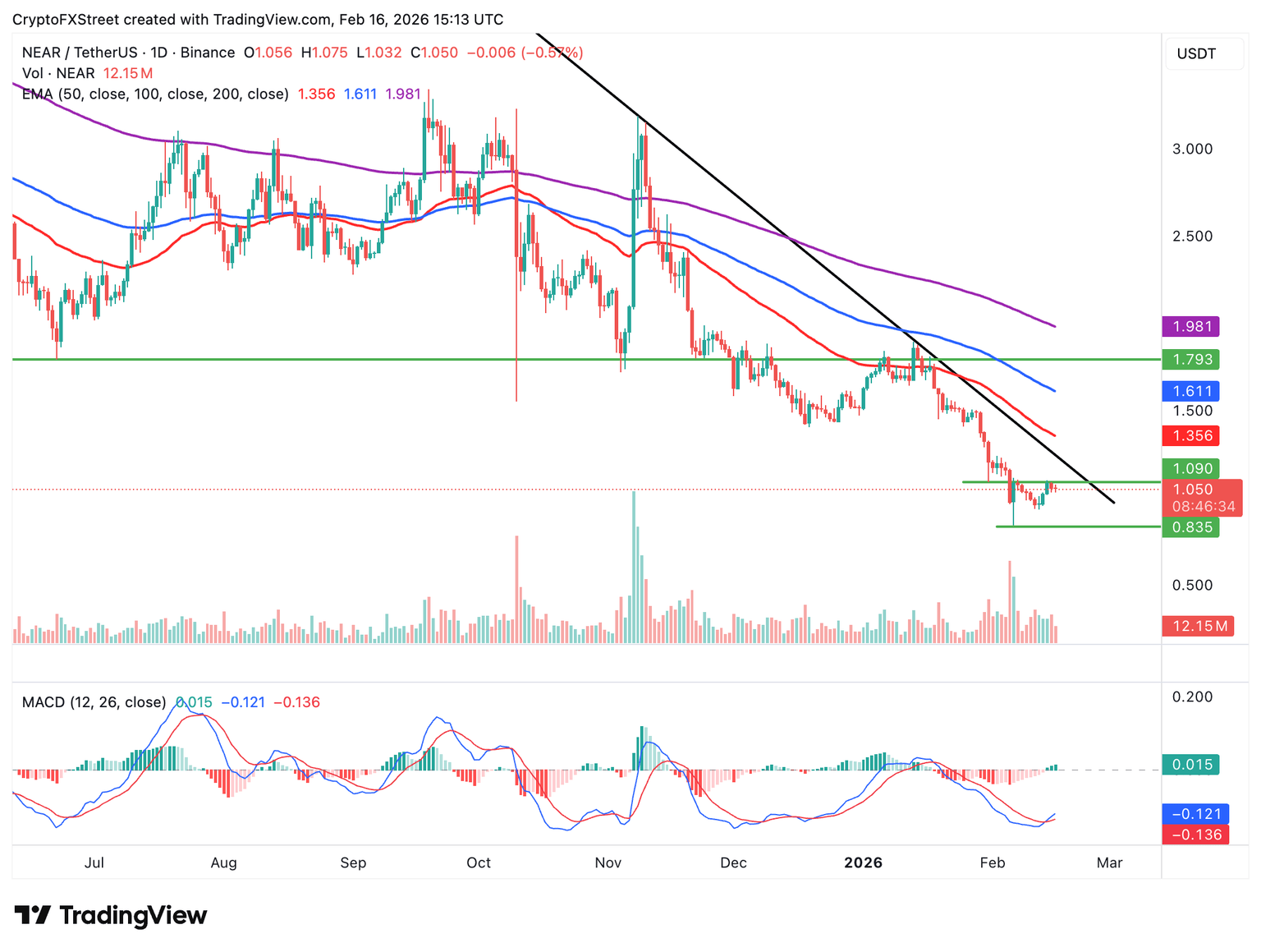 Near Protocol (NEAR), por otro lado, exhibe debilidad estructural, con el segundo token de IA más grande por capitalización de mercado cotizando muy por debajo de su EMA de 50 días en 1.35$, EMA de 100 días en 1.61$ y EMA de 200 días en 1.98$. Las tres medias móviles están inclinadas hacia abajo, preservando la perspectiva bajista a corto plazo.