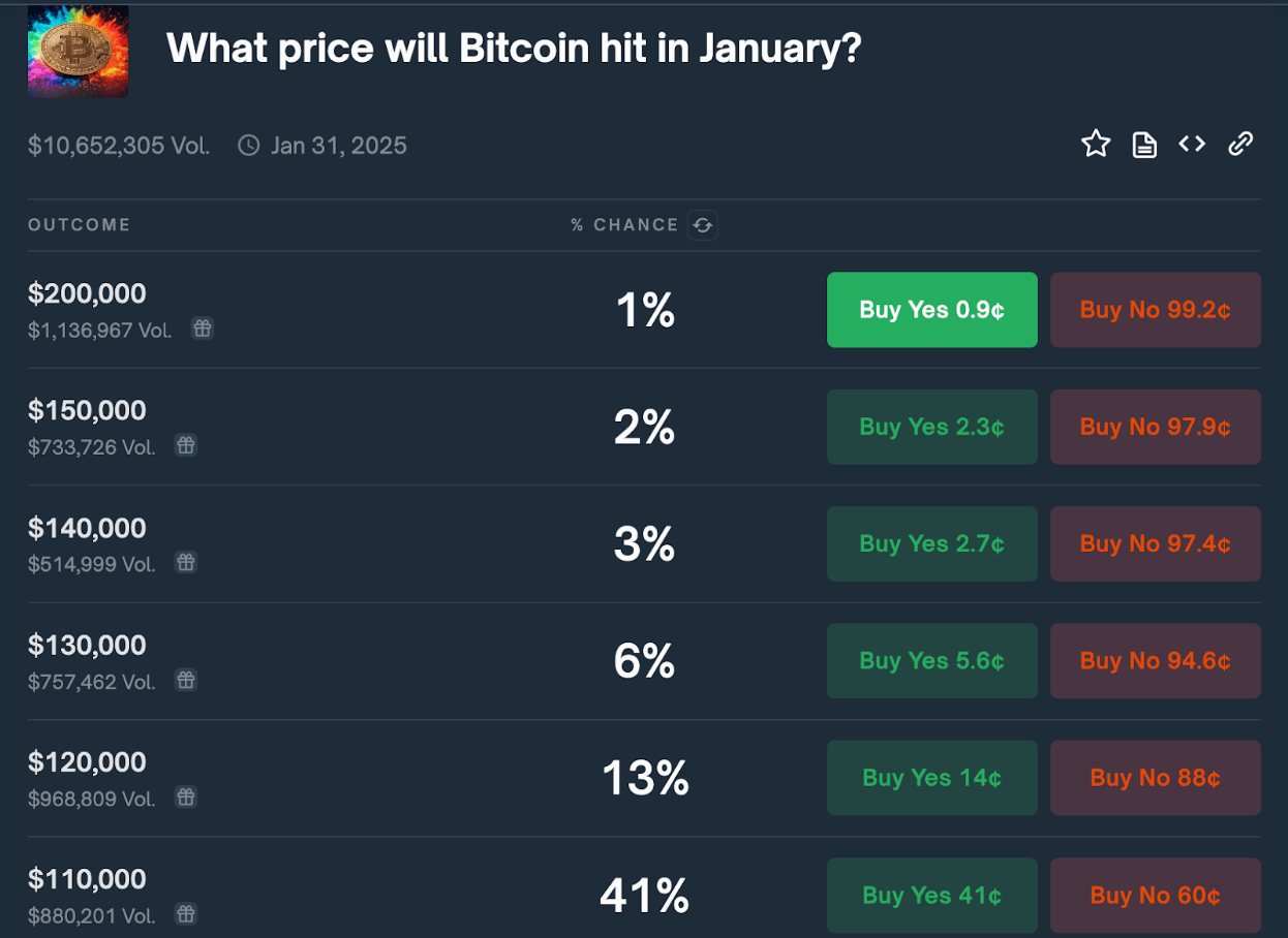 - Pregunta 5: Los comerciantes de criptomonedas en Polymarket votaron una probabilidad del 1% de que BTC alcance los 200.000$ después de la toma de posesión de Trump el 20 de enero. ¿Cree que una mayor participación minorista podría mejorar esas probabilidades ?