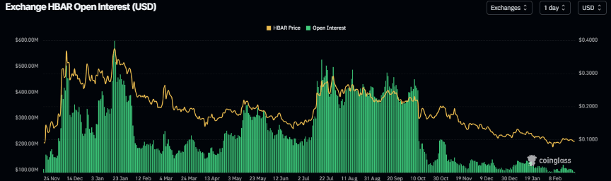 En el lado de los derivados, el interés abierto de futuros de Hedera cae a 92.15 millones de dólares el martes, habiendo estado en una disminución constante desde principios de enero y acercándose al nivel del 6 de febrero de 88.89 millones de dólares. Esta caída en el interés abierto refleja una disminución en la participación de los inversores y proyecta una perspectiva bajista.