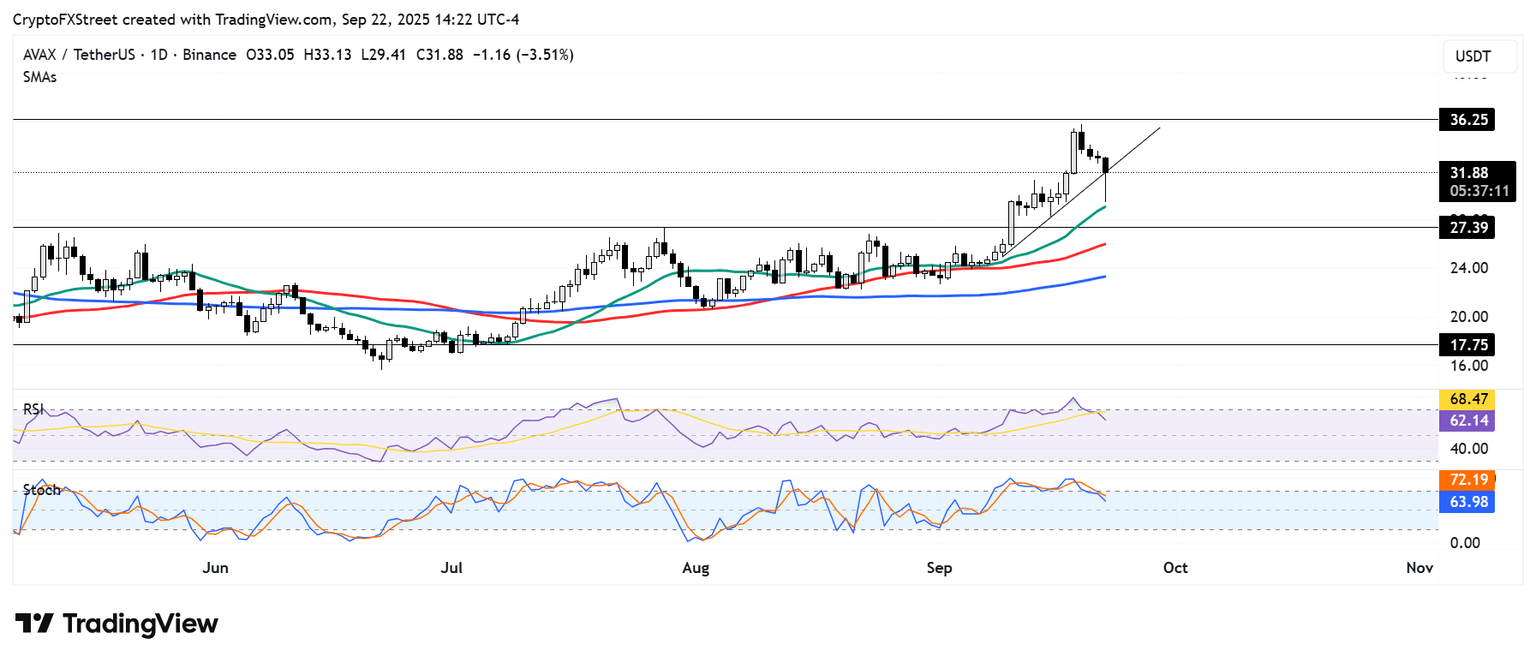 AVAX rebota desde la SMA de 20 días mientras busca recuperar el soporte de la línea de tendencia clave