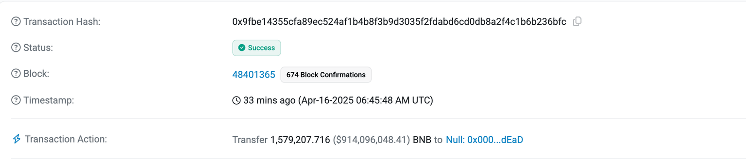 Binance Chain completa la quema de tokens BNB por 914 millones de dólares, lo que sugiere un repunte potencial