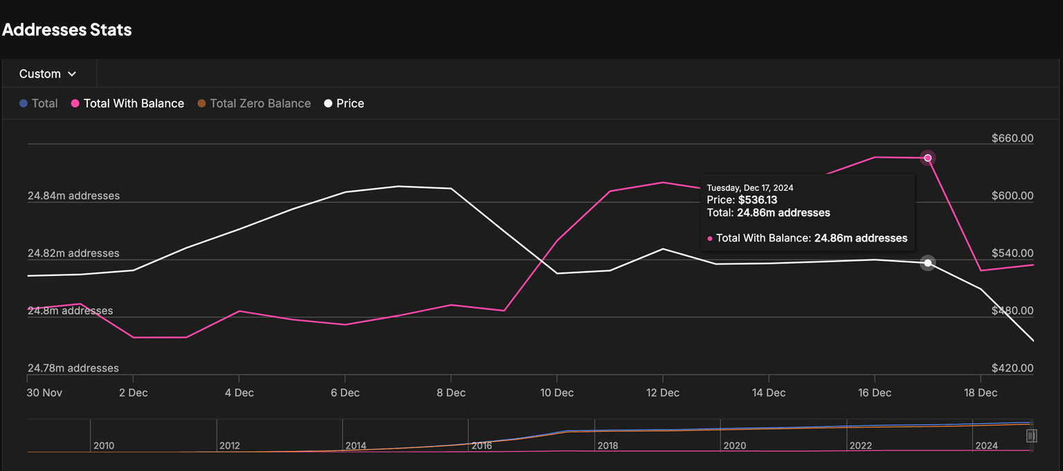 Al 16 de diciembre de 2024, había 24.86 millones de carteras financiadas de BCH en la red.