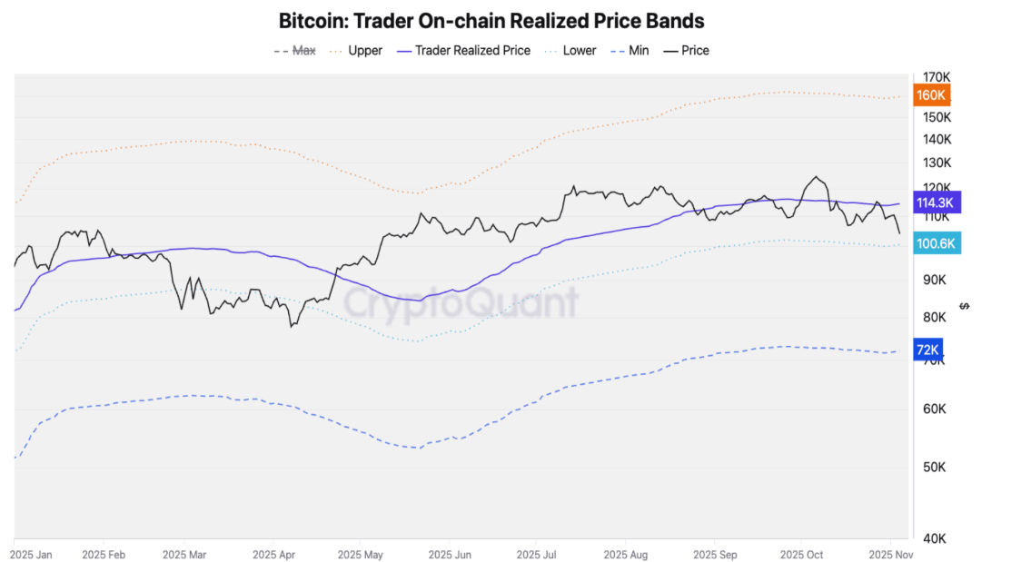 El informe semanal de CryptoQuant, publicado el miércoles, destacó que los fundamentos del BTC siguen siendo débiles, con el precio cayendo por debajo de los 100.000$ por primera vez en meses. El informe agregó que el Rey de las Criptomonedas ahora está flotando cerca de niveles de soporte críticos, cuya ruptura podría desencadenar una corrección más aguda en el mercado.