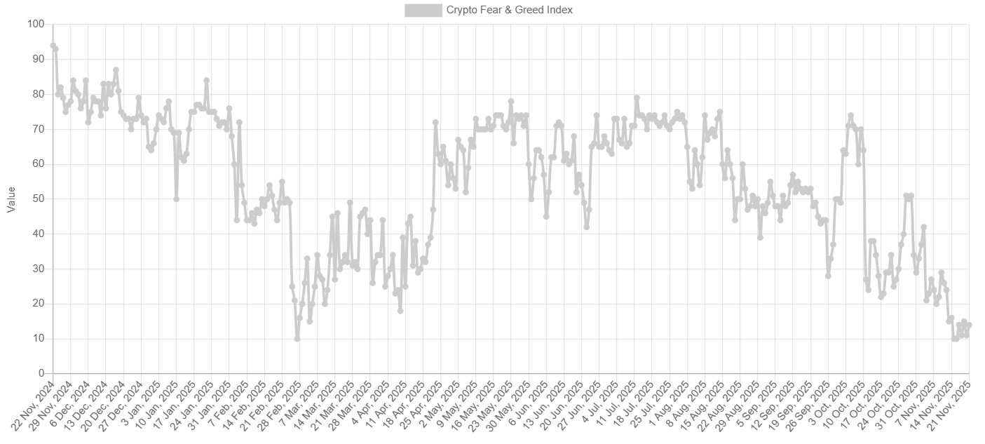 El Índice de Miedo y Avaricia cae a 14 el viernes, acercándose a los mínimos de finales de febrero, indicando un cambio brusco hacia el miedo extremo a medida que los participantes del mercado se preparan para más caídas.