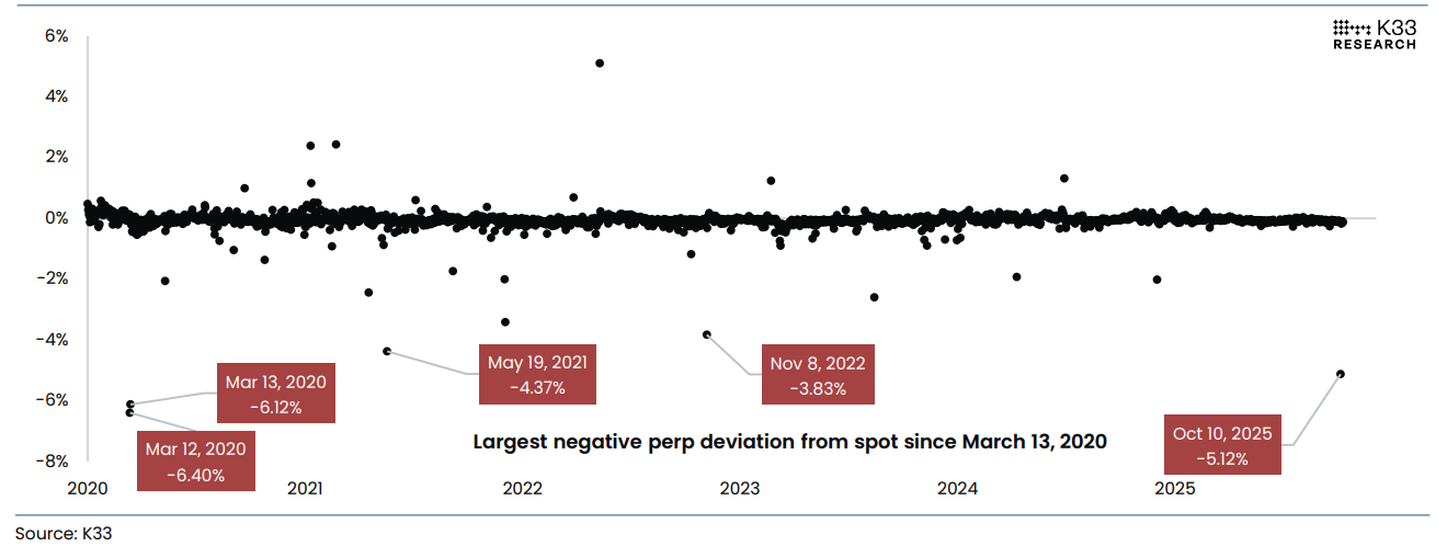 Tras el masivo desalojo de liquidez y el evento de desapalancamiento de la semana pasada el viernes, cuando el Bitcoin cayó de un máximo diario de 122.550$ a un mínimo de 102.000$, un informe de K33 publicado esta semana sugiere que las próximas semanas podrían presentar una ventana oportuna para la implementación de capital en BTC, ya que el reinicio en los mercados perpetuos y la normalización de las dinámicas de financiación pueden sentar las bases para un renovado impulso alcista.