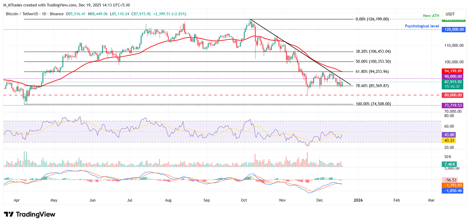 Mirando hacia arriba, si el BTC cierra por encima del nivel de resistencia de 90.000$, podría extender la recuperación hacia la siguiente resistencia clave en 94.253$.