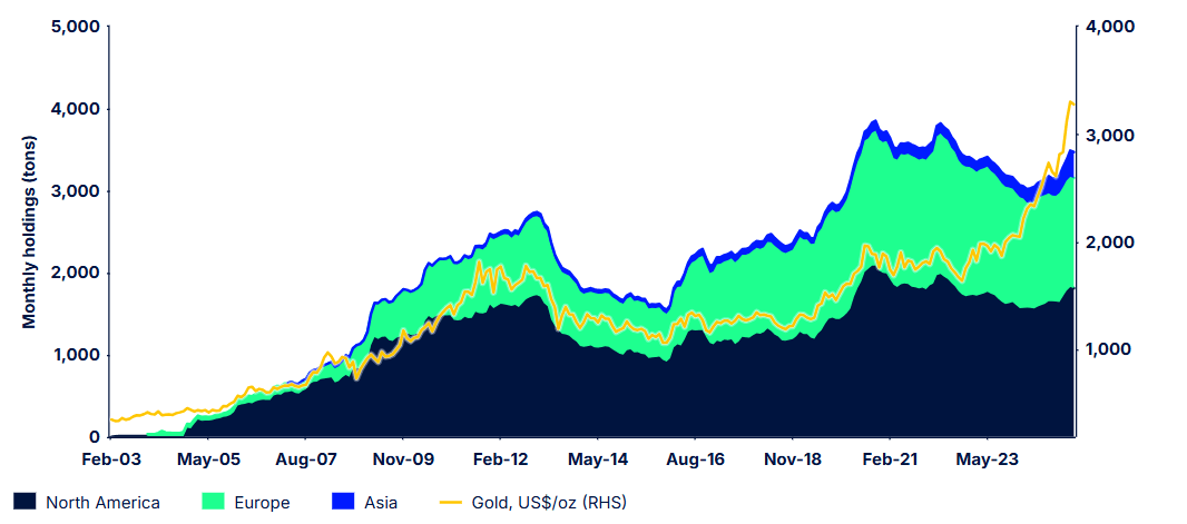 Aparte de la demanda de los bancos centrales, los ETF de Oro también han aumentado, impulsando a XAU a máximos históricos.