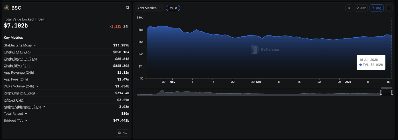 Aún así, BNB extiende su recuperación por tercera semana consecutiva, sugiriendo fuertemente una formación de fondo local. La recuperación es consistente con un resurgimiento en la actividad de la red, incluyendo transacciones y depósitos de usuarios. Los datos de DeFiLlama muestran que el valor total de los activos digitales depositados en la cadena BNB se sitúa en 7.102 millones de dólares el viernes, en comparación con 6.602 millones de dólares el 1 de enero.